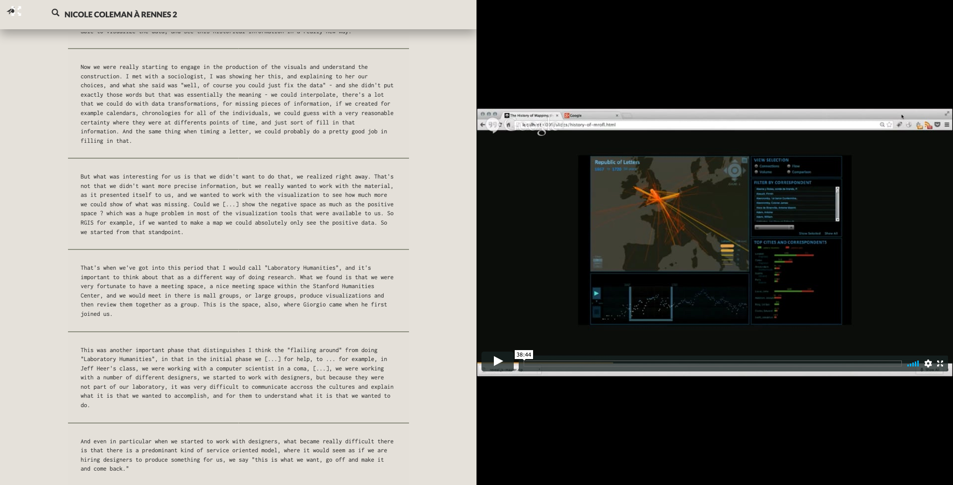 Cʼest seulement quand jʼai vu ce que le médialab était capable de faire, et quand jʼai vu toutes les choses sur le travail collaboratif – wiki et toutes ces choses – jʼai pensé que si je voulais rendre la tâche publique, ma propre limitation serait trop évidente, et il serait vraiment intéressant de partager le