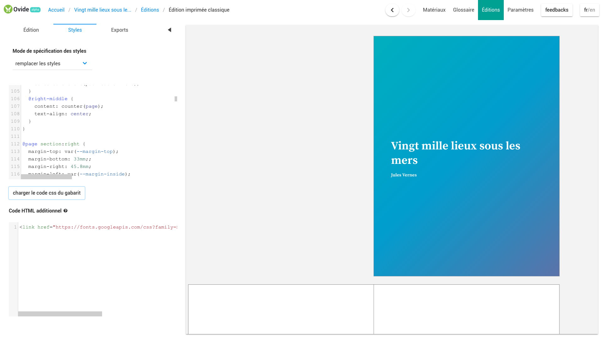 Mise en page au moyen du logiciel Ovide, des modules du projet Peritext, du langage Cascading Style Sheets et de la technologie libre paged.js.